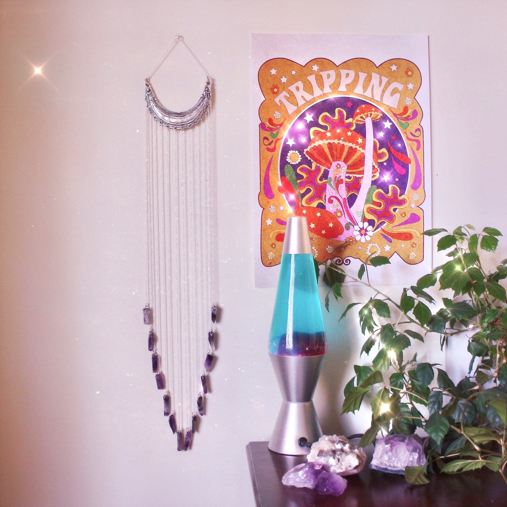 ♡ Please be aware that the amethyst pictured is not the exact amethyst that will be used on your one-of-a-kind wall hanging. Crystal sizes slightly vary.