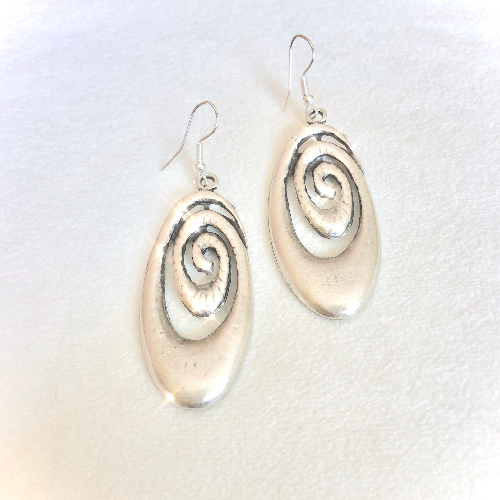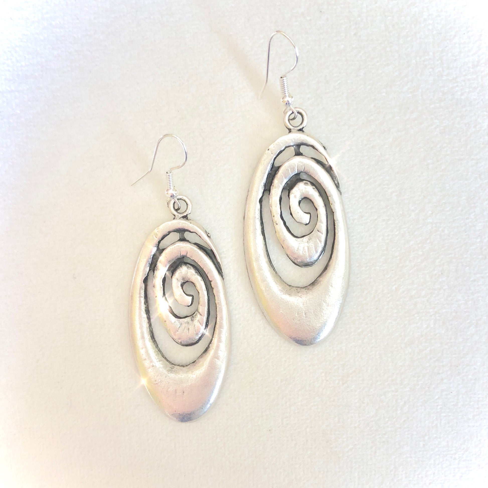 ♡ Featuring two antique silver plated swirl pendants