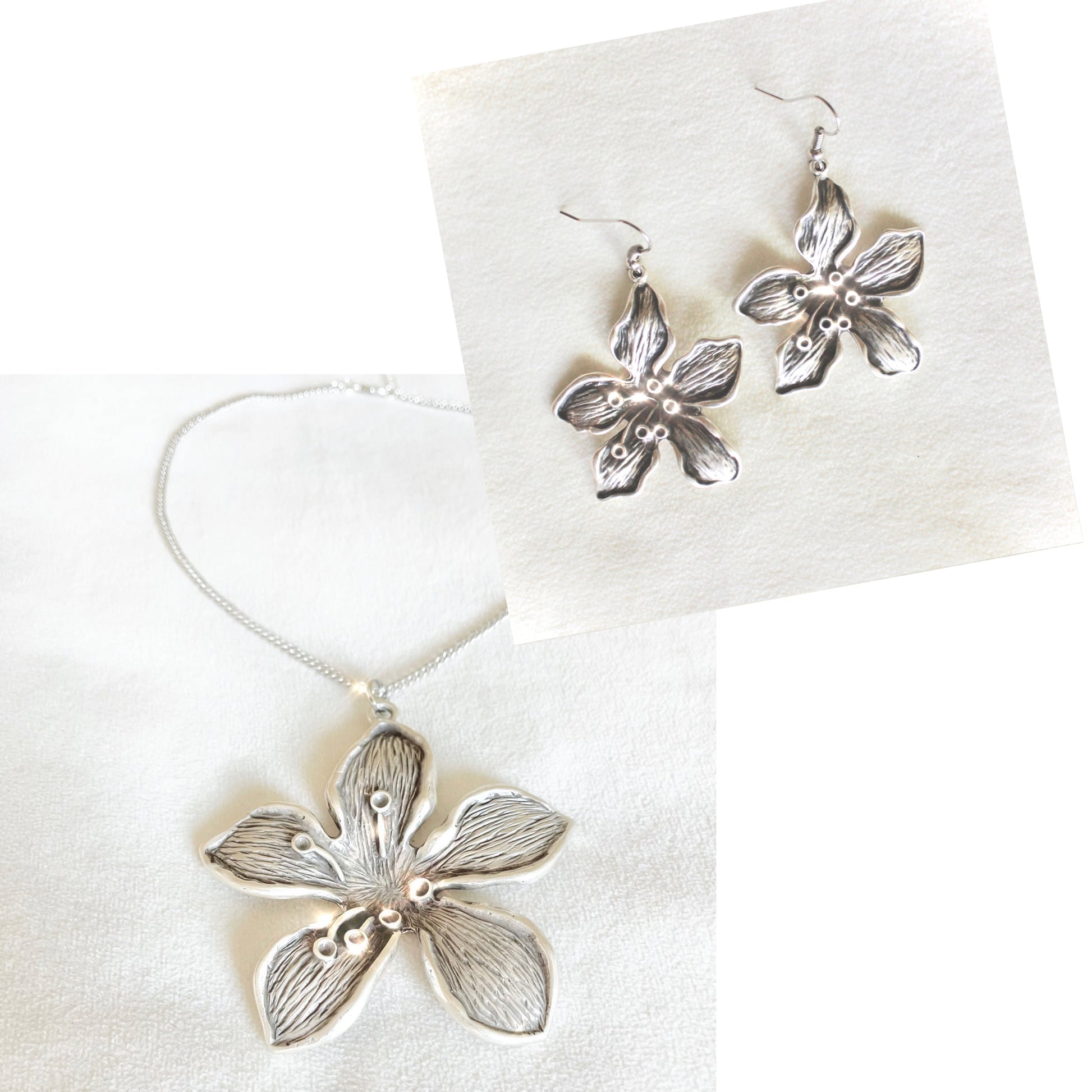 ♡ Featuring two antique silver plated flower pendants