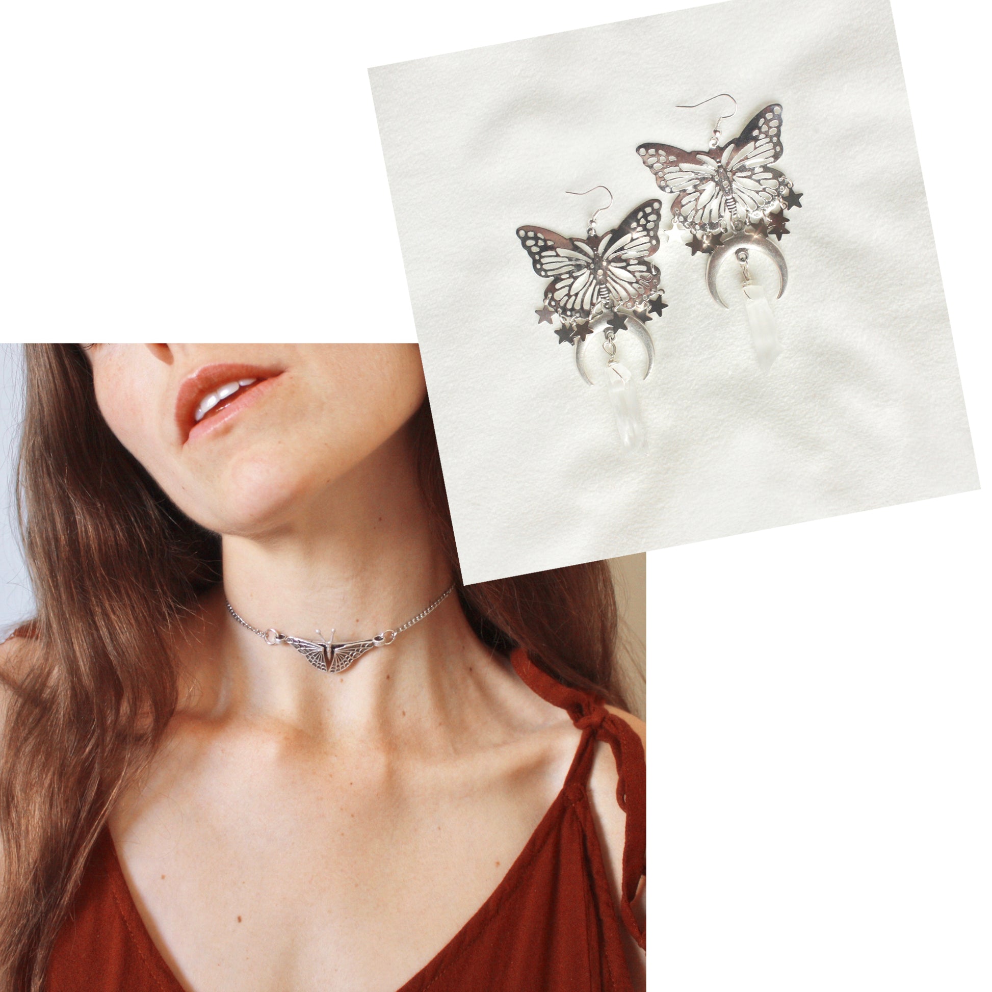 Happiness is a Butterfly Choker/Moonlight Lovers Earrings- SILVER BUNDLE