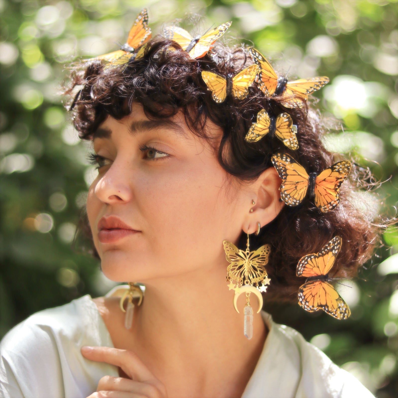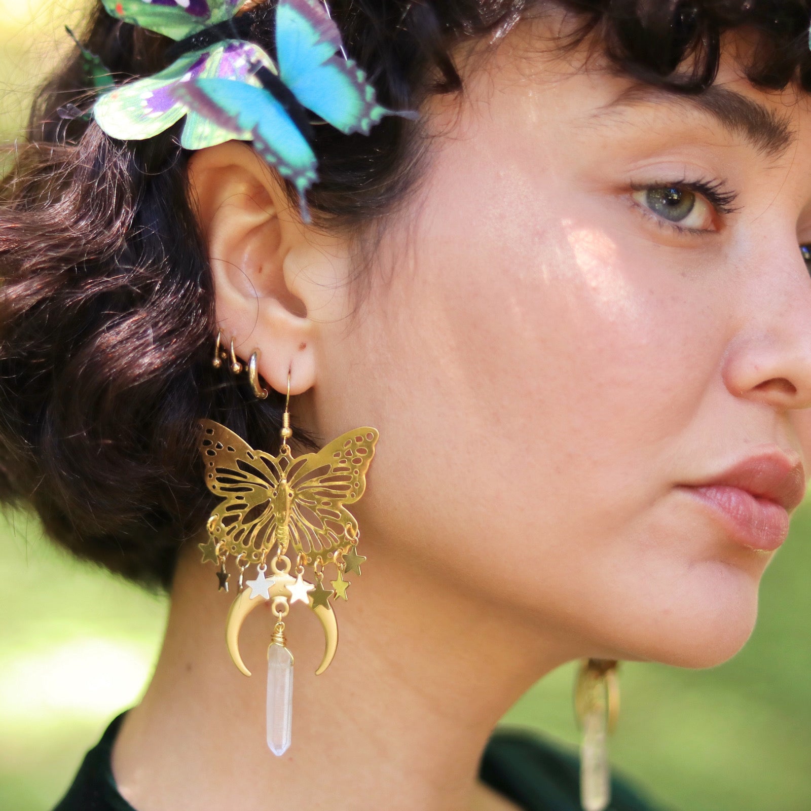 A bit of a bolder take on the Summer Sisters Earrings, these earrings are for serious romantics. Warm summer nights, long walks holding hands, staying up so late you can see the moonlight peeking through. You will love the subtle glow these wire-wrapped quartz crystals cast. Find this nature-inspired pair in both gold and silver colorways ♡