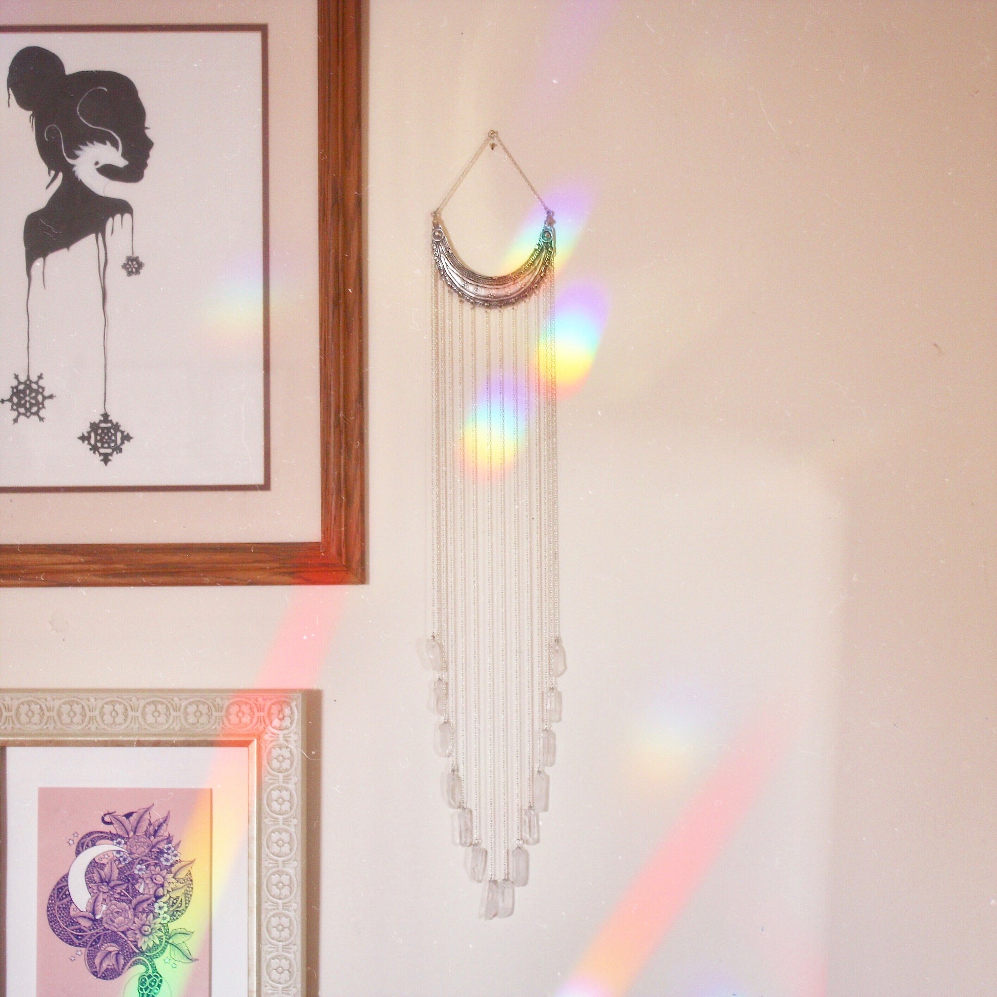♡ Please be aware that the quartz pictured is not the exact quartz that will be used on your one-of-a-kind wall hanging. Crystal sizes slightly vary.