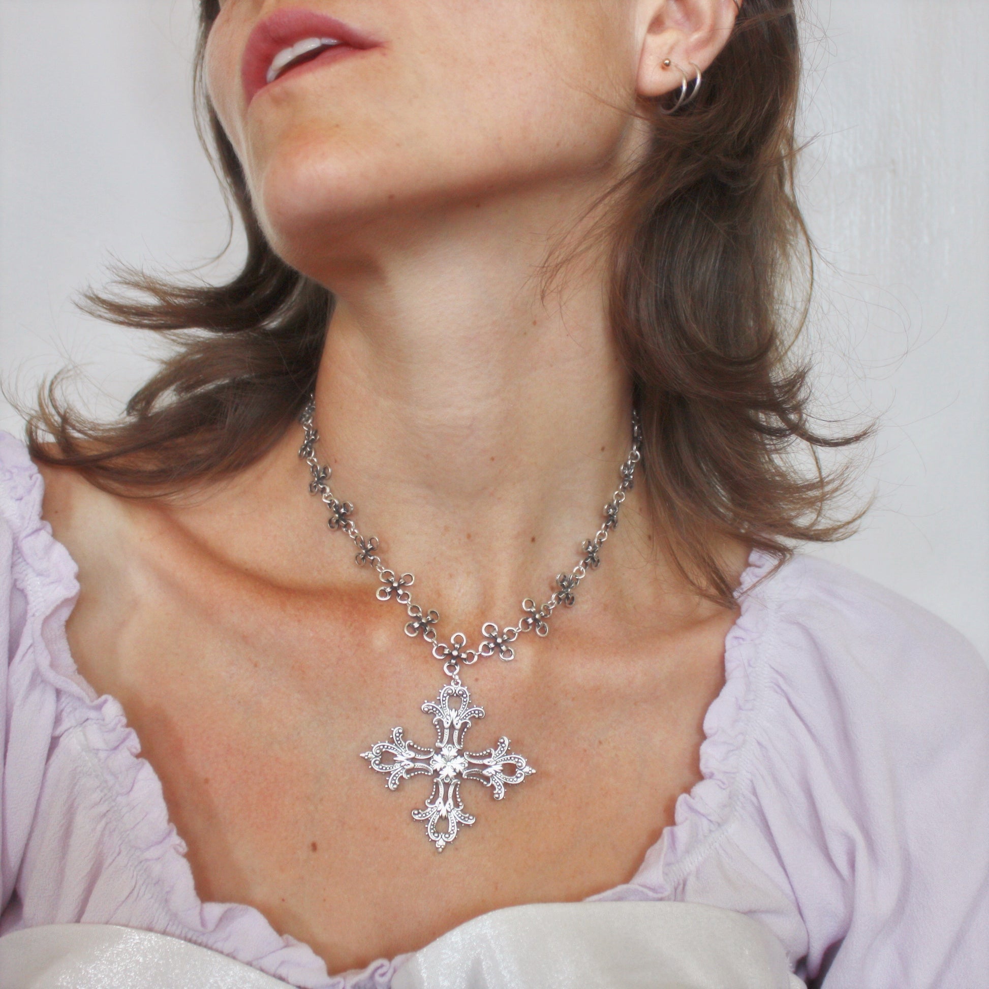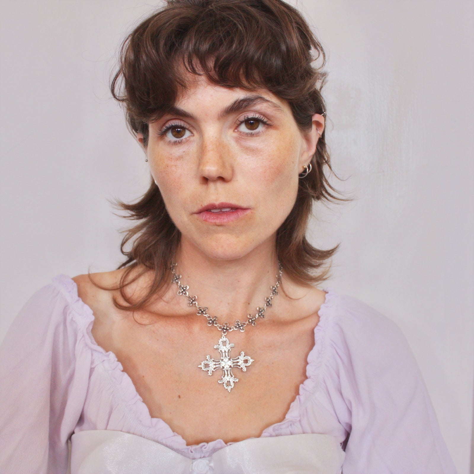The ‘Ring Around the Rosie’ Choker is about beauty with some darkness 🌹 Featuring interlocking silver flower charms and a big bold cross pendant, you will find yourself incorporating this choker into your everyday. Wear with a baggie oversized distressed tee or with a more form-fitting crop top - either way you will love this bold, unique, Crafturday original reminiscent of 90s grunge. Enjoy ✨