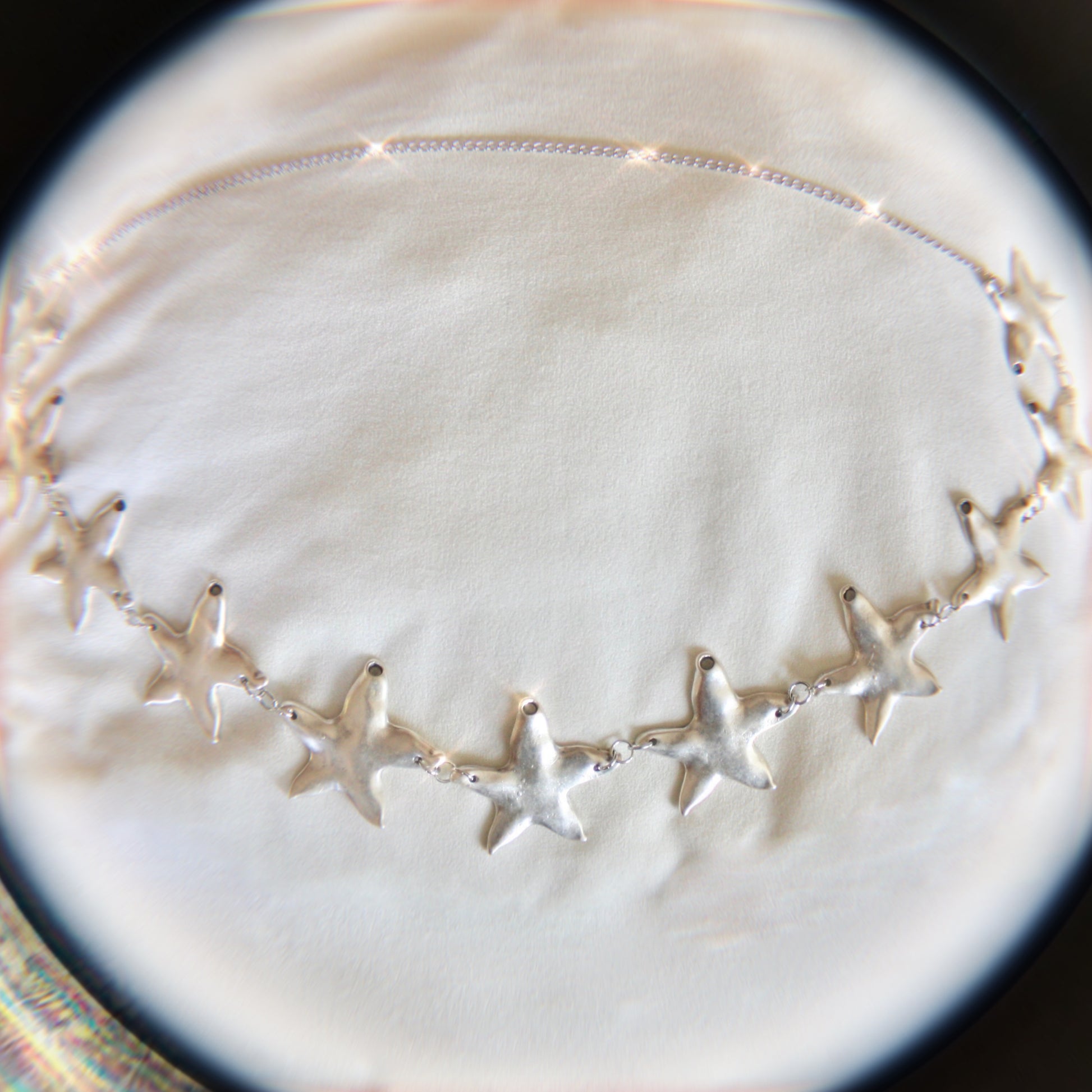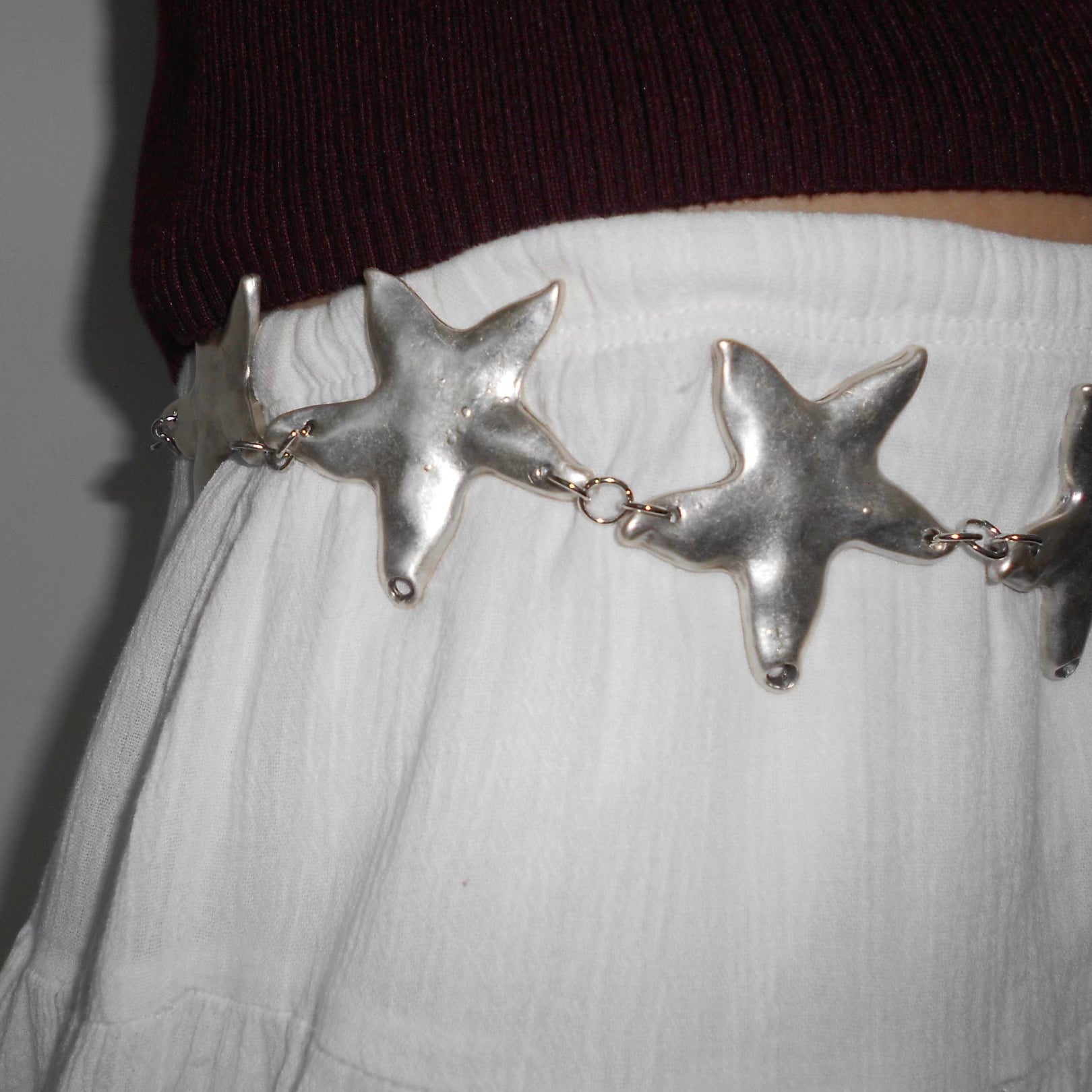 A futuristic, bold piece, not for the faint of heart ♡ The Sea of Stars Belt looks especially stunning when paired with a metallic sheath dress or satin skirt. Throw an oversized, woolly sweater over the outfit to dress it down, or when in winter. Be prepared to set the trend in this one-of-a-kind piece, handmade with love ♡