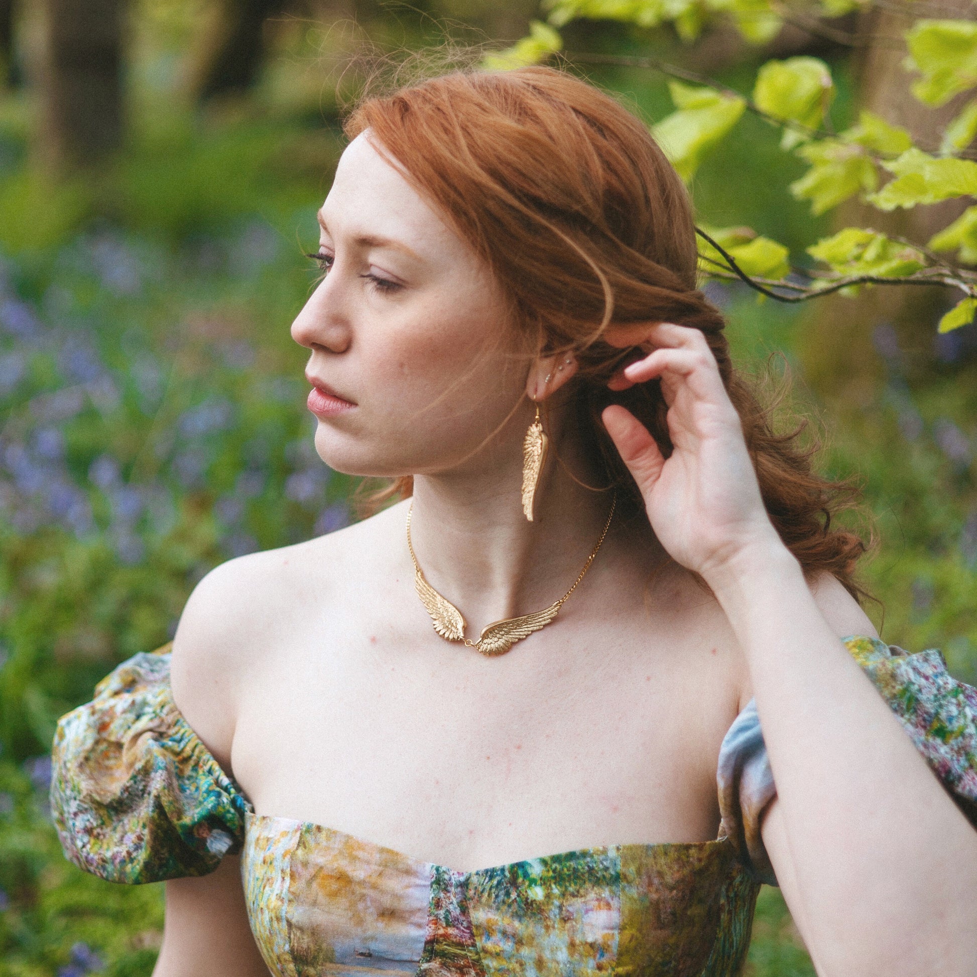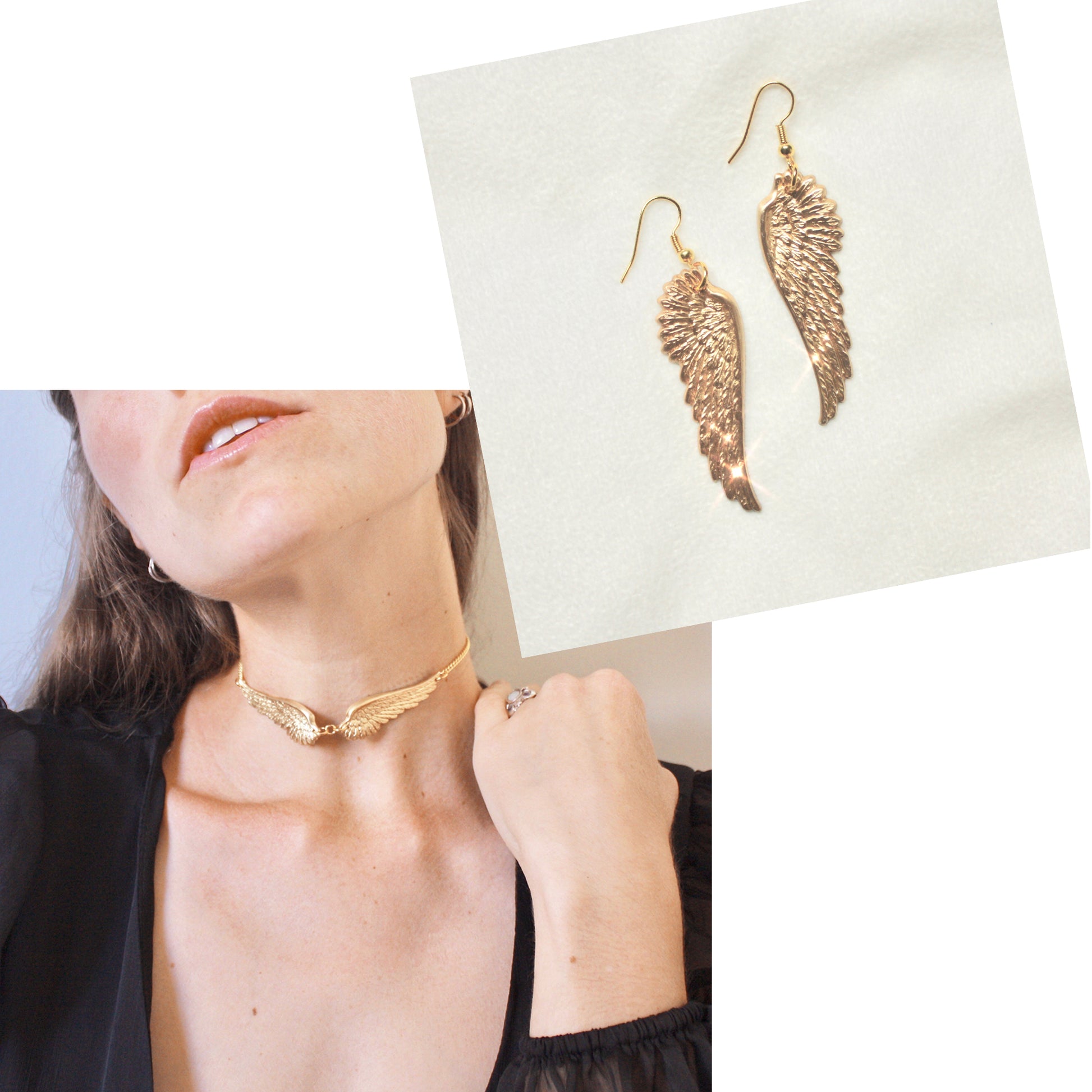 Angel wing jewelry that is a reminder of protection and love from above. You are always guarded, you are always grounded ♡ These polished brass wing earrings feature two gothic wing pendants on ear wire. Gold angel earrings that will make you feel like an absolute ethereal goddess ♡ Hint: wear with a sparkly metallic top to make these faerie earrings pop ♡ Enjoy!