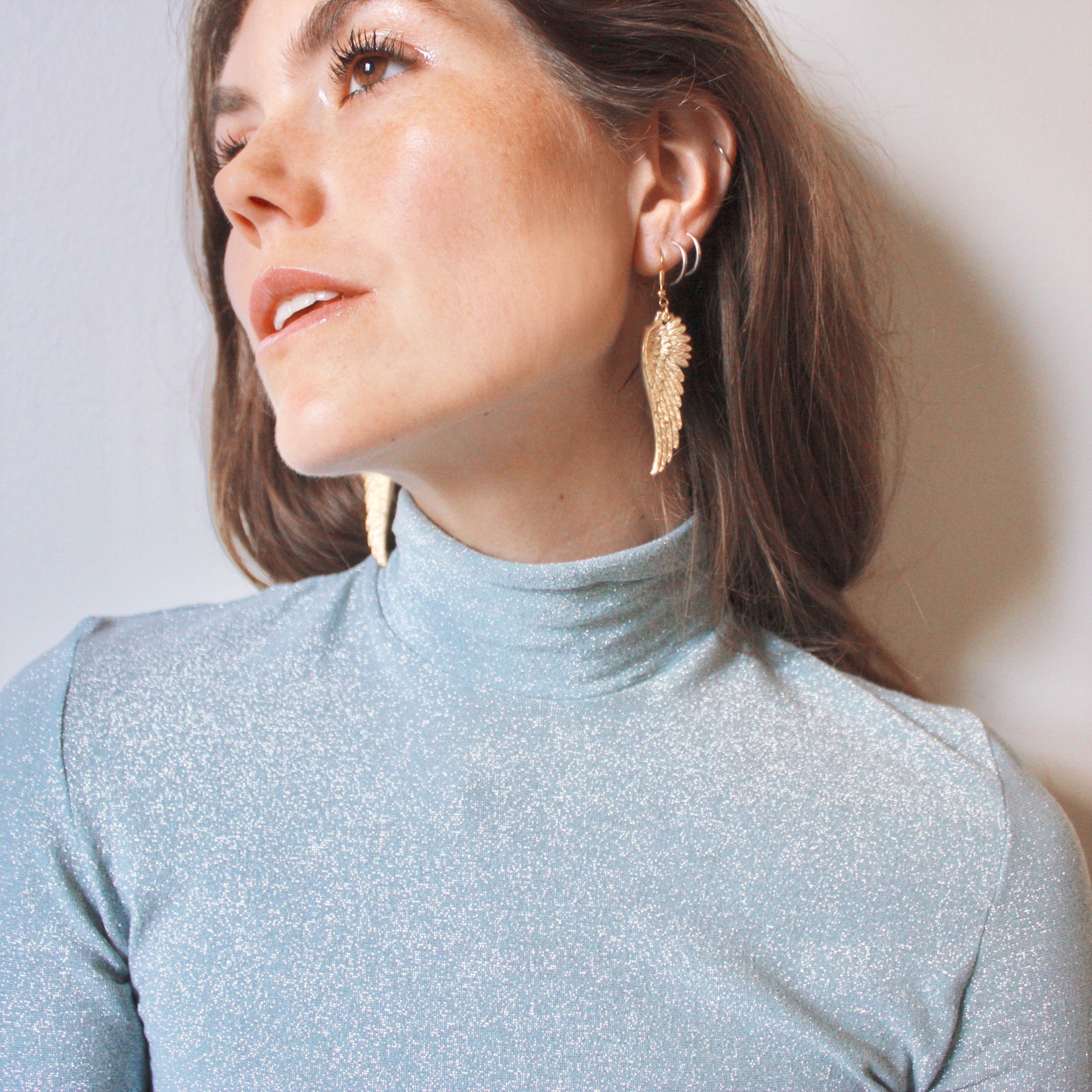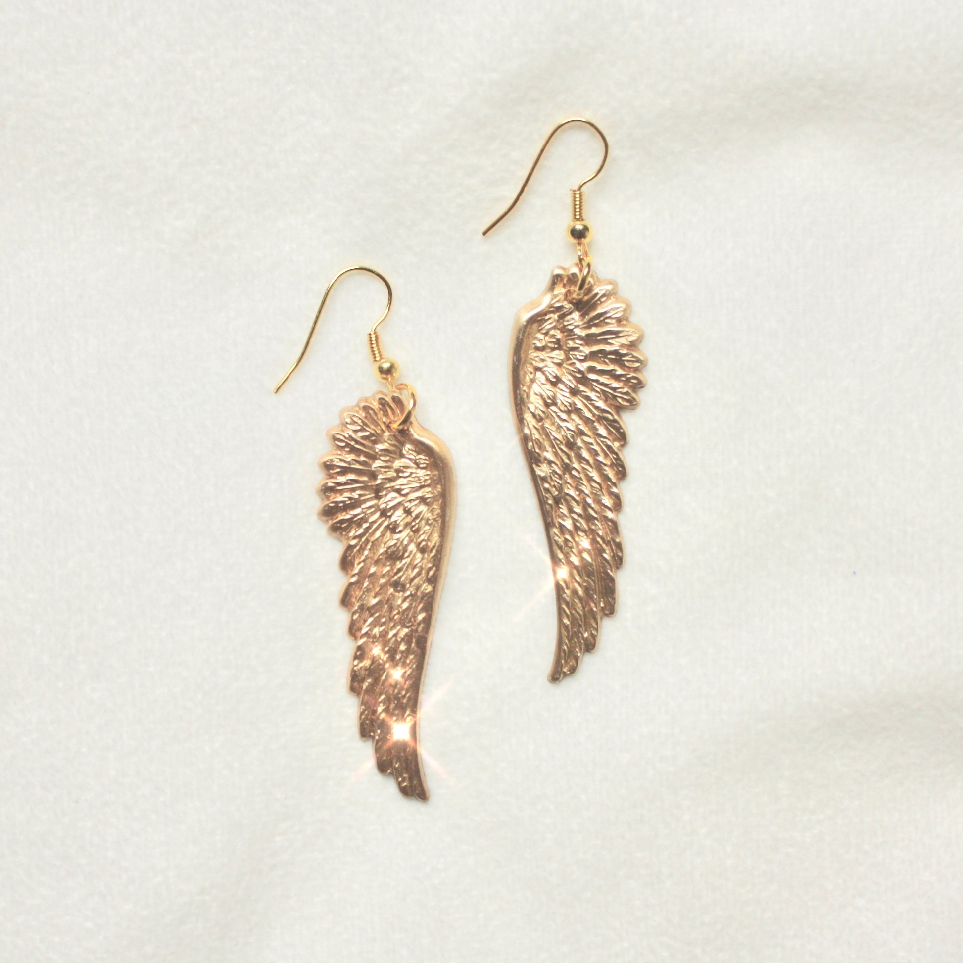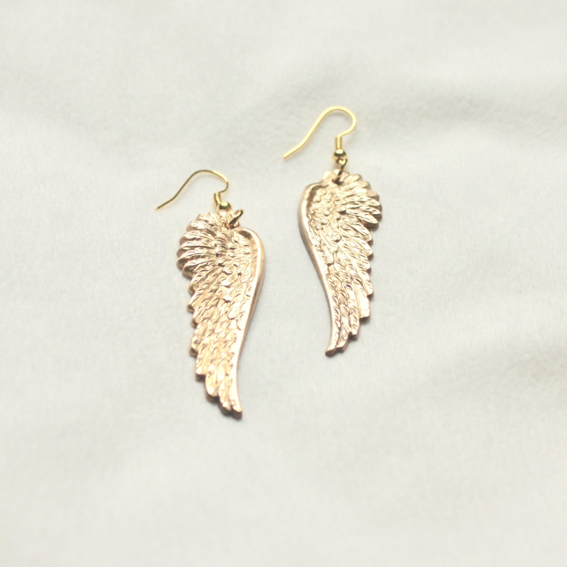 Angel wing jewelry that is a reminder of protection and love from above. You are always guarded, you are always grounded ♡ These polished brass wing earrings feature two gothic wing pendants on ear wire. Gold angel earrings that will make you feel like an absolute ethereal goddess ♡ Hint: wear with a sparkly metallic top to make these faerie earrings pop ♡ Enjoy!