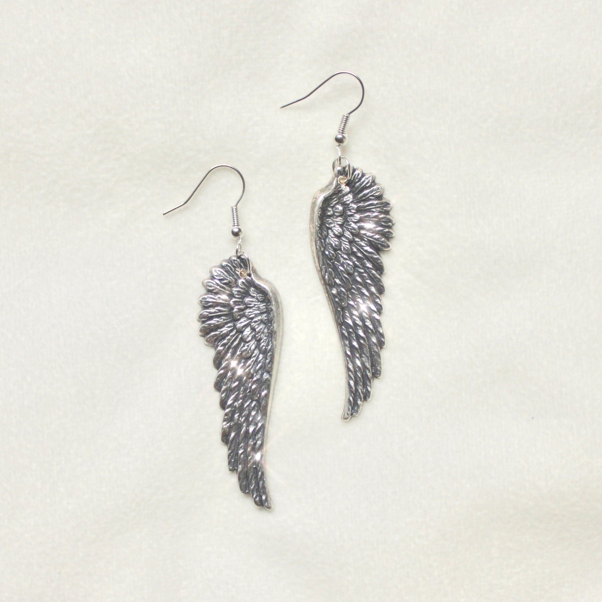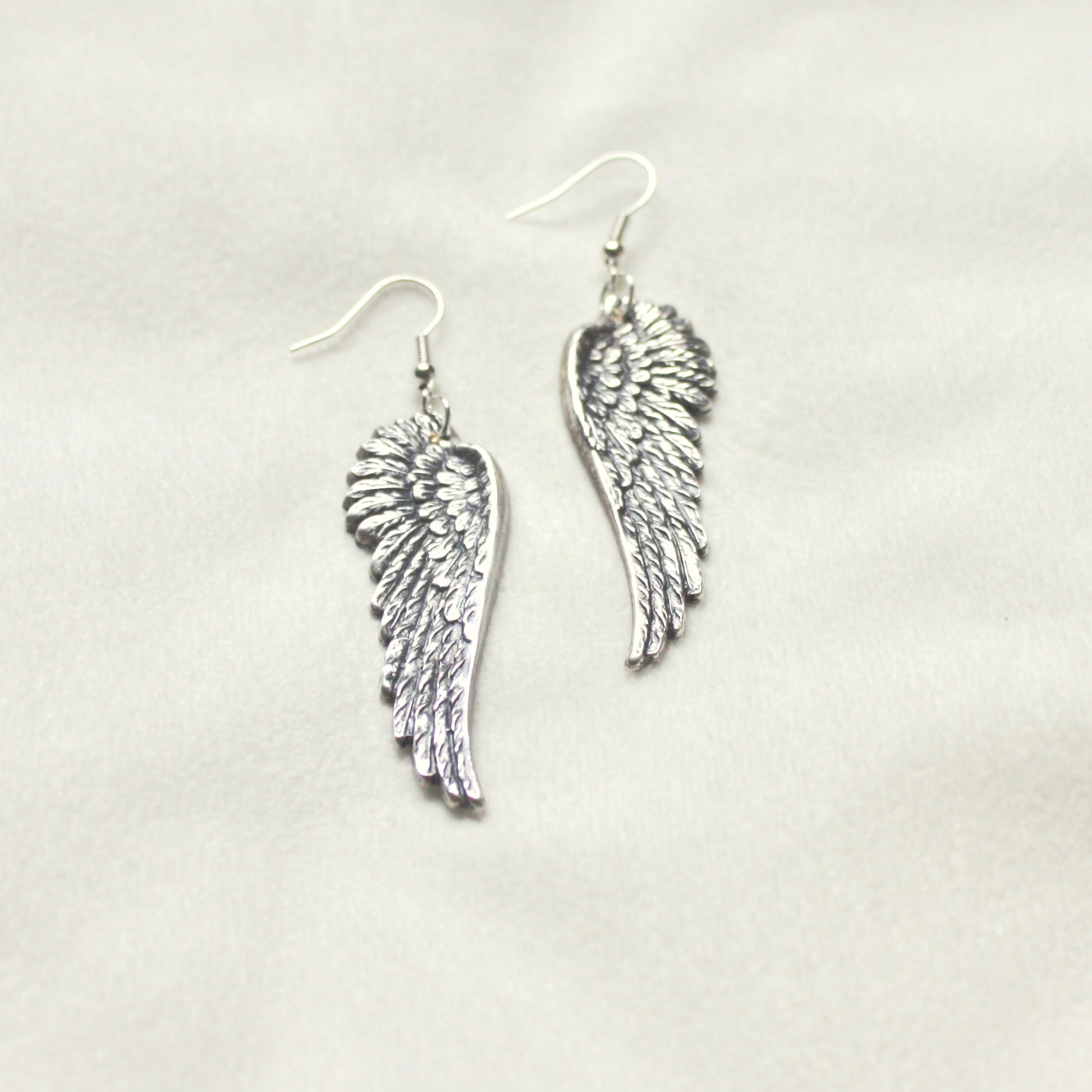 Angel wing earrings that are a reminder of protection and love from above. You are always guarded, you are always grounded ♡ These silver wing earrings feature two gothic wing pendants on silver ear wire. Angel earrings that will make you feel like an absolute ethereal goddess ♡ Hint: wear with a sparkly metallic top to make these fairy earrings pop ♡ Enjoy!
